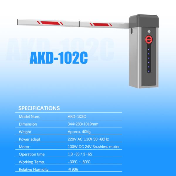 The AnKuai AKD102C automatic boom barrier has a variety of boom types, including straight, telescopic, LED, folding, and fence boom. The height of the boom support is 890MM, which makes it suitable for various types of vehicles. The remote control distance is ≤30M, making it easy to control from a distance. It can be used in various weather conditions as it has a working temperature of -30°C-80°C. The voltage required to operate the boom barrier is AC220/AC110±10%, 50/60HZ.